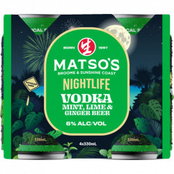 Matso’s created Australia’s first alcoholic ginger beer! Using the same great ginger beer and made it even more extraordinary with the NIGHTLIFE range that is 6% tropical strength. When the sun goes down, the night comes alive. Everything you love about Matso’s Ginger Beer with mint and a squeeze of lime for good measure. A new flavour after dark.