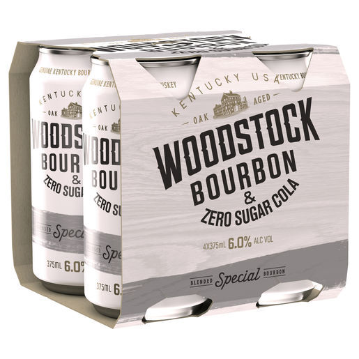Woodstock 6% is now available with zero sugar cola. The 100 per cent Kentucky Bourbon has been distilled and left to mature in American Oak barrels before being mixed with zero sugar cola.