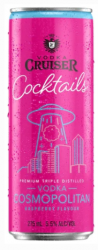 Vodka Cruiser Cocktails is available in variations of popular vodka-based cocktails, Passionfruit Daiquiri, Raspberry Cosmopolitan, and Lime Margarita with a premium tripled distilled vodka as a base.